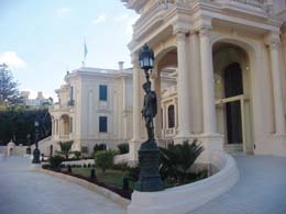خطوات نقترب بها في اتجاه القصر الذي تزيد مساحته على 4000 متر، فتجذبنا حديقته المنسّقة بعناية، والقصر المفتوح على فترتين صباحية ومسائية إلى الثامنة ليلا برسم دخول رمزي للمصريين يرحب بنا في أجوائه التاريخية مانعًا كاميراتنا من الدخول، لكن نجد صورًا تذكارية لجميع المعروضات مشروحة بشكل وافٍ في مكتبة القصر.