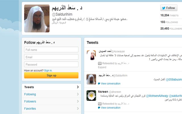 يشار الى ارتفاع اعداد متابعي الدريهم، وهو إمام وخطيب احد الجوامع جنوب الرياض، الى اكثر من عشرين الفا على تويتر في اقل من يومين.