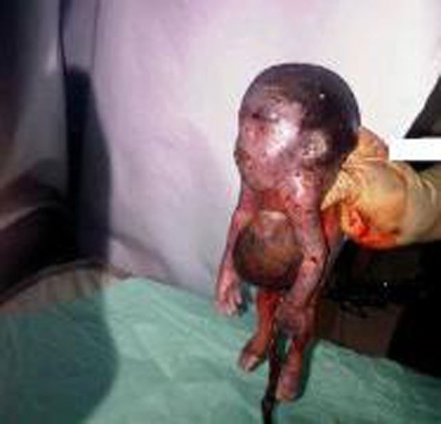وضعت سيدة نيجيرية مولوداً برأس إنسان وأرجل ماعز في حالة نادرة في ولاية جيغاوا النيجيرية. وبحسب ما يظهر في الصورة فإن المولود يحمل رأس إنسان بدون رقبه، وله ارجل ماعز مع يدين بشريتين.