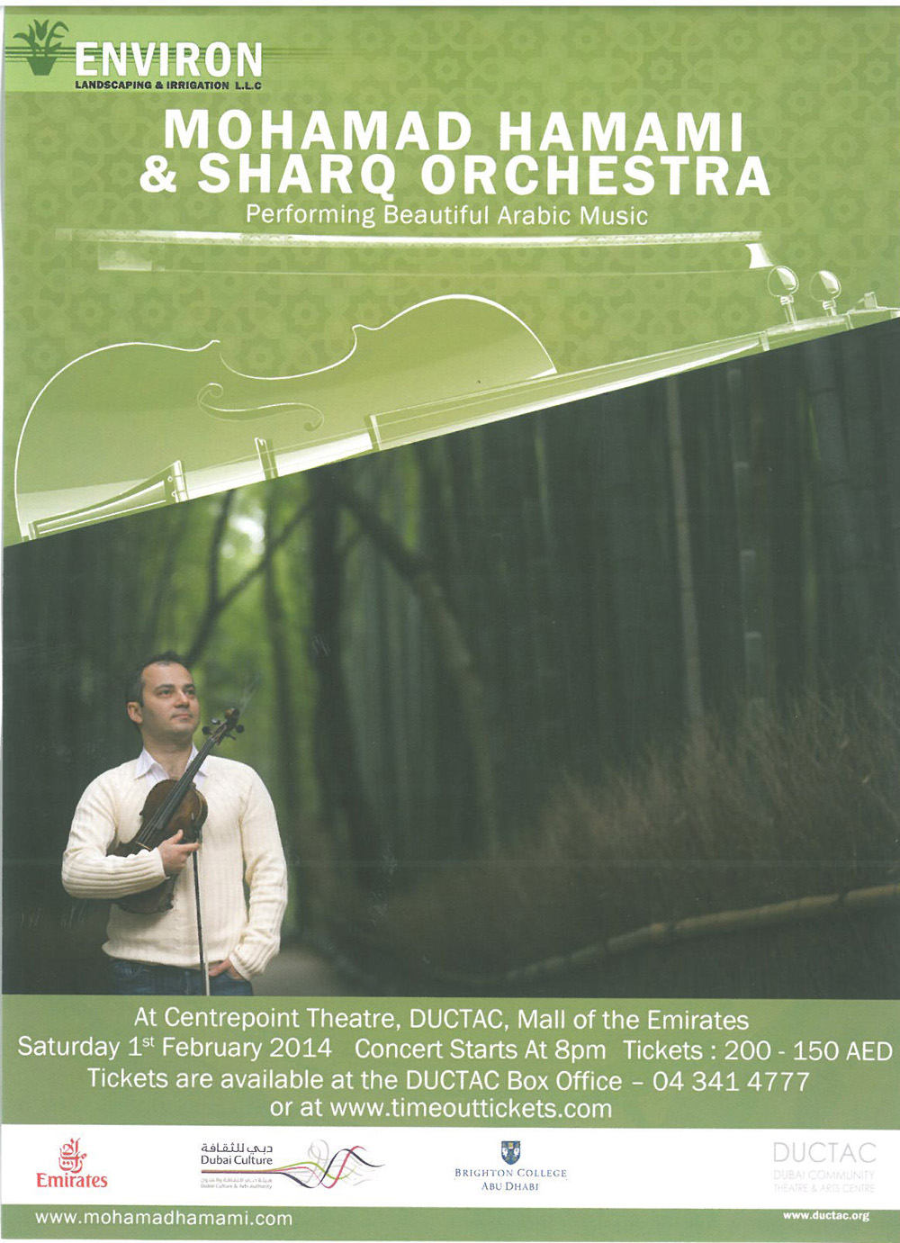 تسضيف دبي لؤلؤة الإمارات، في المسرح العام لمول الإمارات بمطلع الشهر المقبل فبراير 2014، وللمرة السابعة على التوالي، روائع قائد الأوركسترا وعازف الكمان السوري محمد حمامي الخلابة التي تتميز بمعزوفات من الأغاني التي لا تنسى للعديد من الفنانين والمبدعين من عصور الطرب الذهبي.