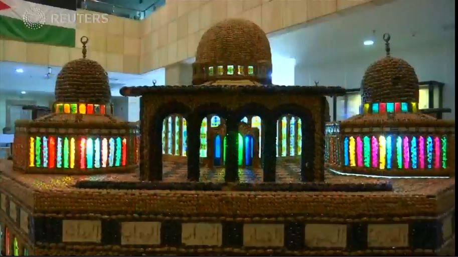 كما أنشأ هيكل قبة الصخرة، الذي استخدم فيه ما يقارب نصف مليون نواة زيتون وتمر، وكذلك فسيفساء زجاجية ملونة.