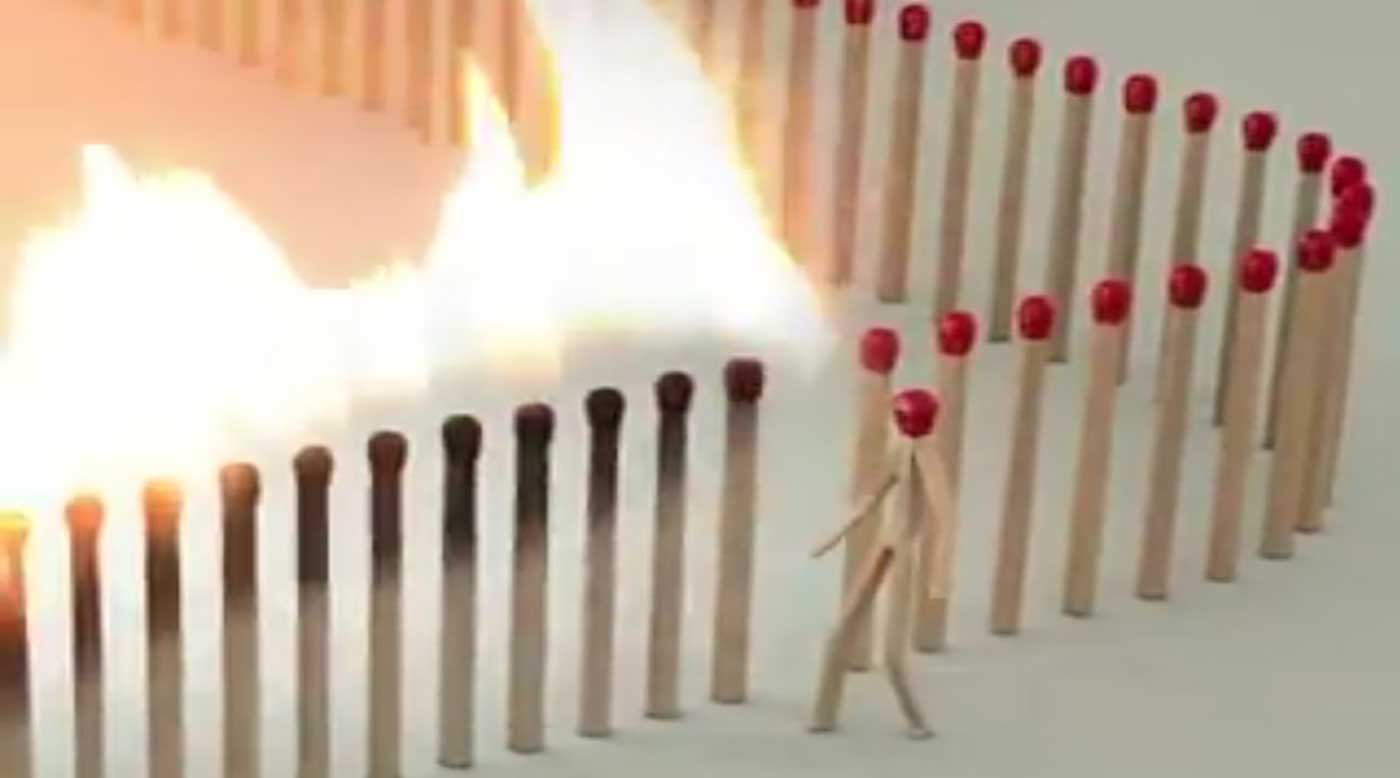 العمل الفني يتخذ من عيدان الكبريت لغة لمخاطبة المتلقي وايصال الرسالة التوعوية، التي تحض على "التباعد الاجتماعي" كأحسن وسيلة لاحتواء فيروس كورونا القاتل، الذي يضرب العالم.