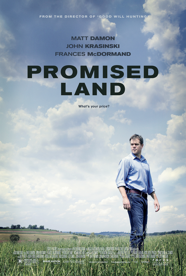 Promised Land رجل أعمال وشريكته يقصدان قرية أميركية نائية تعانى من آثار الأزمة الاقتصادية، يقدمان عرضاً مغرياً للسكان للسماح لهما بالتنقيب في أراضيهم بحثا عن النفط والغاز، ما يراه البعض فرصة لإنقاذ اقتصاد القرية.