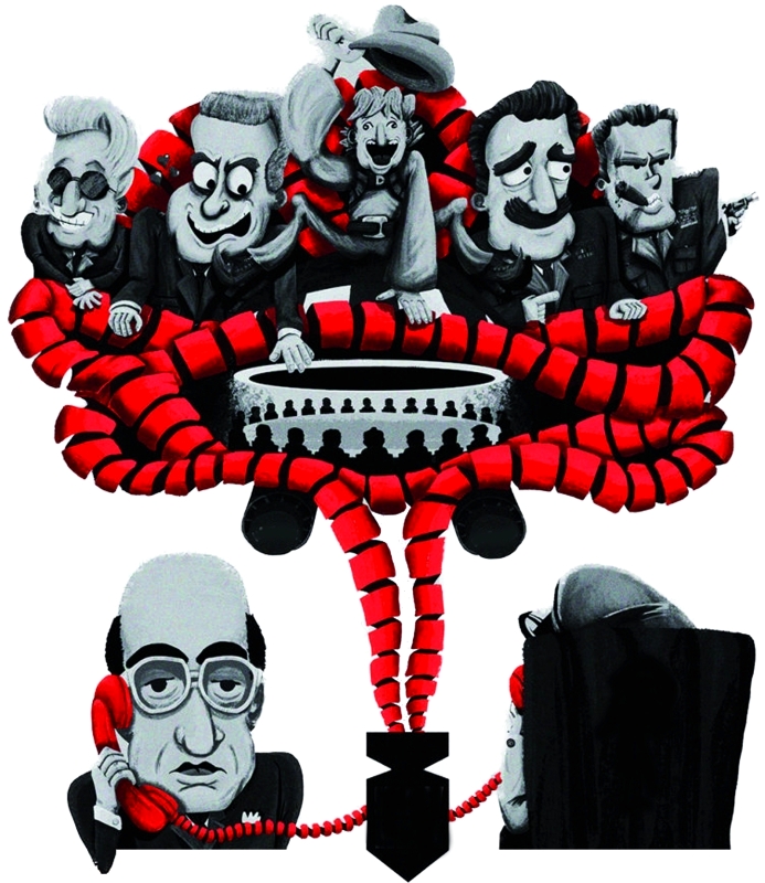 على مدار التاريخ قدمت هوليوود أفلاماً كثيراً في هذا المضمار، من بينها فيلم (Dr. Strangelove) (1964)، الذي يعد من أجمل اللوحات السينمائية التي قدمها المخرج ستانلبي كوبريك، واستطاع أن يتحول إلى فيلم كلاسيكي، قدم فيه الممثل بيتر سيليرس أداءً رائعاً. وقوة هذا الفيلم تكمن في طبيعة فكرته الملأى بالسخرية، فهي تتحدث عن مخاوف الحرب النونية (شكل محتمل من أشكال النزاع تستعمل فيه القنابل الذرية أو الهيدروجينية) أثناء الحرب الباردة بين الولايات المتحدة والاتحاد السوفيتي سابقاً.