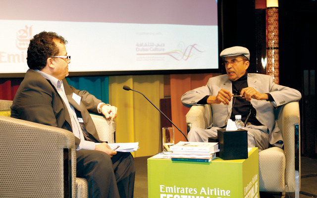 ضمن الندوات التي حفل بها المهرجان، حاور الكاتب المصري كمال عبد الملك، أول من أمس، الكاتب الليبي إبراهيم الكوني، في ندوة هيمنت ثنائيات الصحراء والمدينة عليها، والانسان الرحالة والإنسان المستقر، حيث نبش عوالم الصحراء ومخزونها.