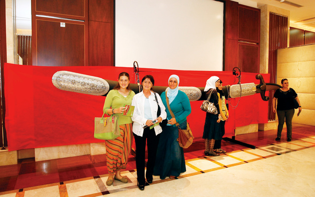 شقت مجموعة من المشغولات المعدنية بأحجام قياسية من بينها سيوف وخناجر وأقواس نشاب طريقها إلى صالة مؤسسة سلطان بن علي العويس الثقافية بدبي، حيث يعرض منذ مساء أول من أمس أكبر سيف في العالم ويبلغ طوله ستة أمتار ووزنه 250 كغ وقام بتصميمه وتنفيذه الفنان عماد غالغاي في مشغله بالشارقة وأطلق عليه اسم (السيف العملاق) .