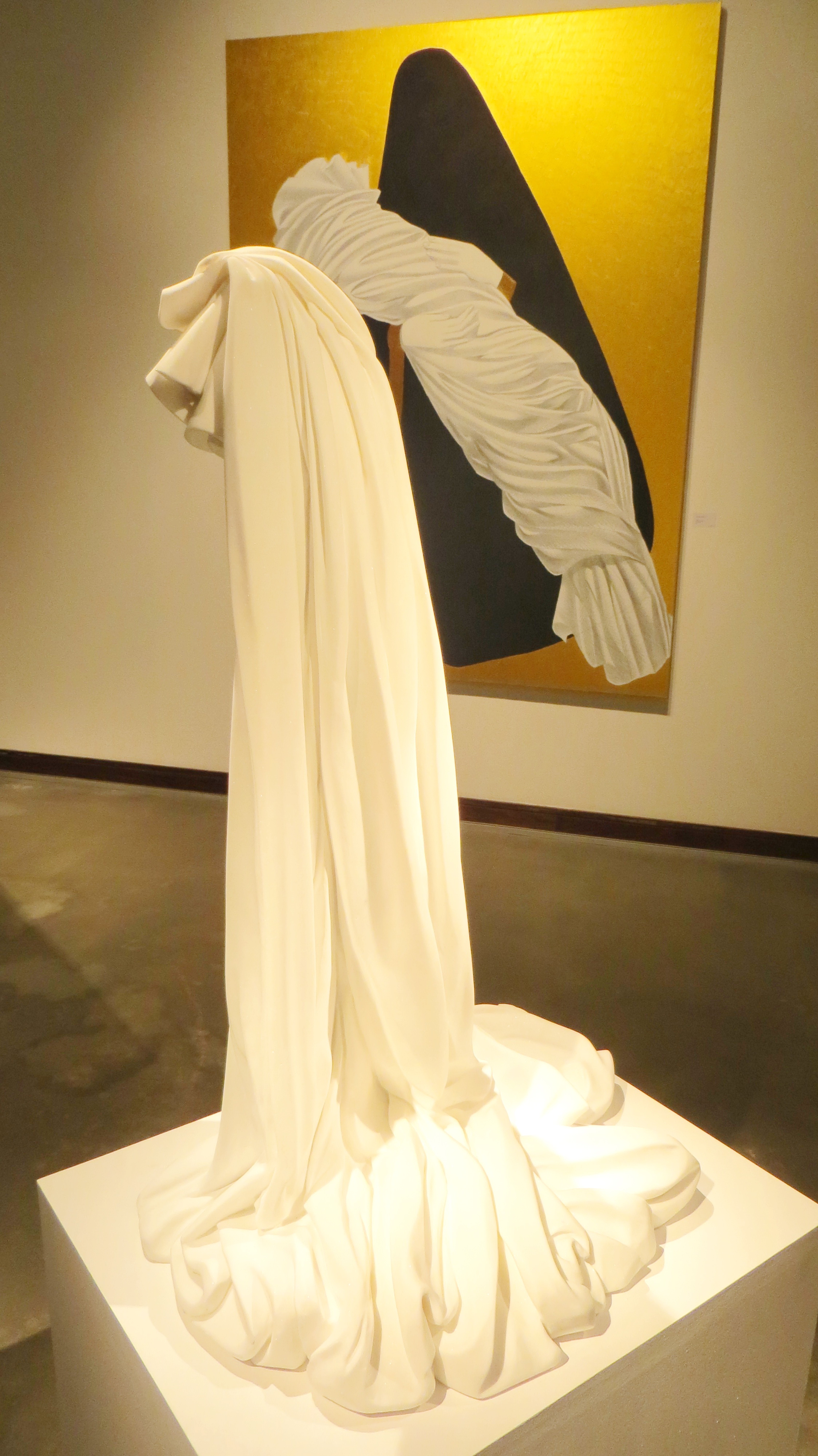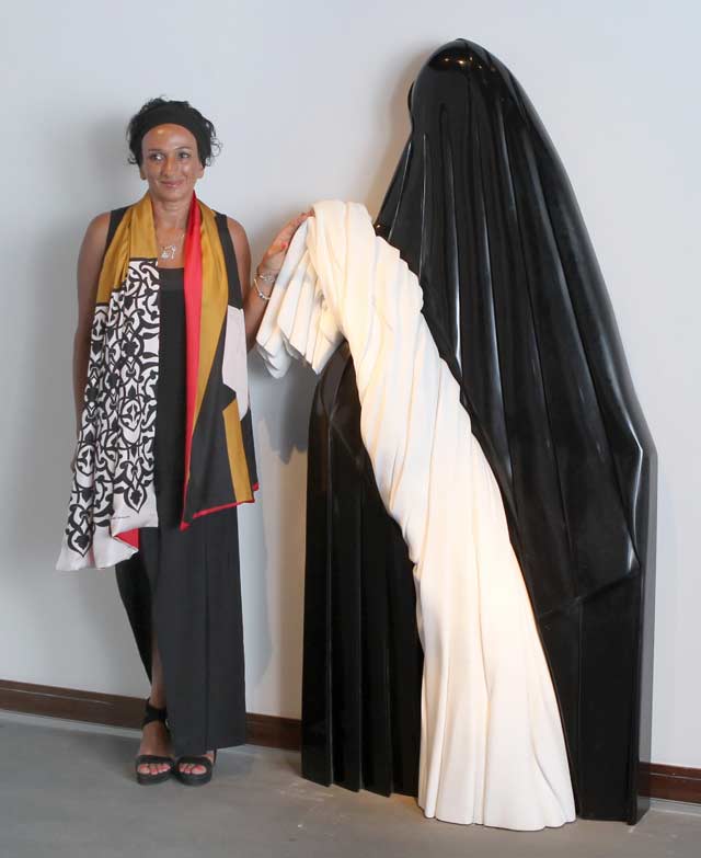 وبقدر ما تبدو أعمالها رومانسية وشاعرية، بقدر ما تحمله من جدلية وتساؤلات، جمعت بين تناقضات عالم المرأة الخارجي والمستتر، وتحمل كل لوحة أو منحوته فكرة بحد ذاتها، ففي منحوتتها "بييتا"، تحمل المرأة المحتجبة بسواد الغرانيت طهرانية روحها البيضاء من رخام الكاريرا، الذي طوعته ليتحول إلى طيات من القماش اللين، لتنتقل إلى منحوتة أخرى أظهرت إبداعها وقدراتها الفنية، لينساب الرخام كالحرير الأبيض برشاقته وخفته الافتراضية.