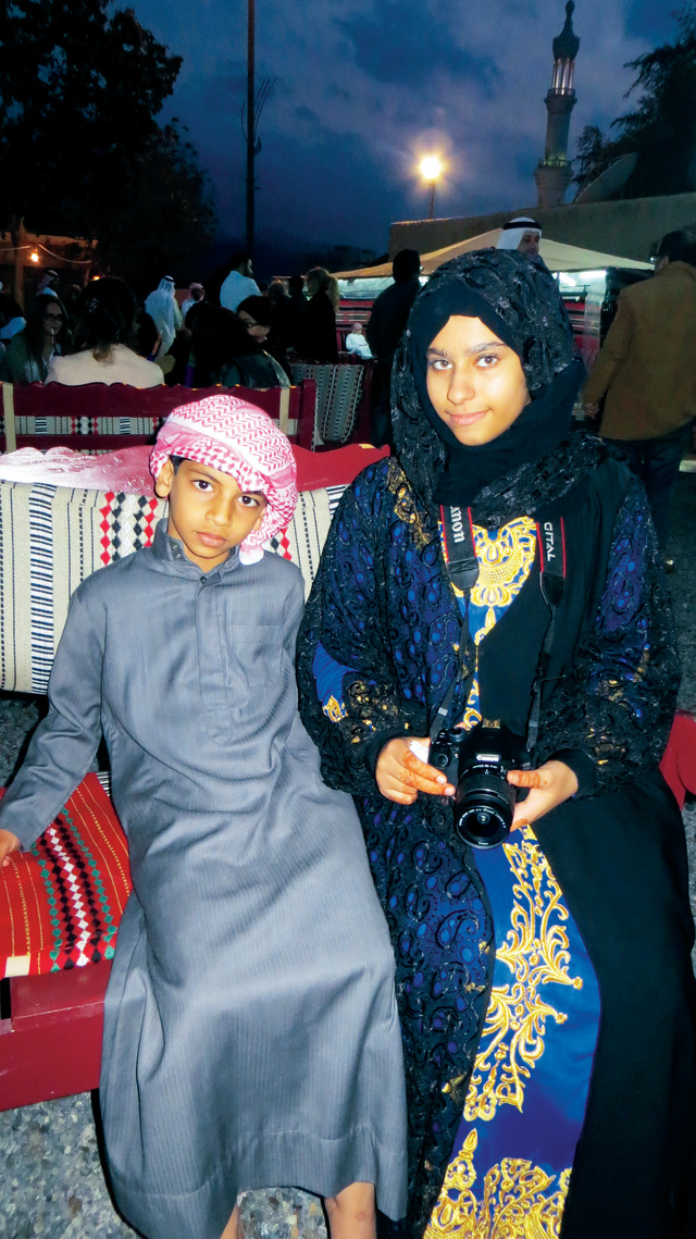 تواظب الطالبة سارة أحمد اللاغشي وابن أخيها الطفل أحمد عبيد اللاغشي من سكان دبا على حضور عروض الدورة السادسة من مهرجان الفجيرة الدولي، أسوة بالدورات السابقة. وتحرص على التقاط صور الممثلين الذين تلتقي بهم قبل العروض.