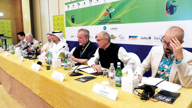 وشارك بالندوة التي أدارها المخرج المسرحي عزيز خيون من العراق، كل من هشام الغرايبة وحسين نشوان من الأردن، والممثل عبدالله راشد من الإمارات، وزوجة الراحل أمل المشايخ.