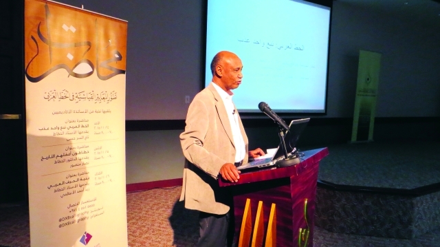 وقال: إن لغتنا العربية ظلت بنظامها الكتابي الأبجدي الراقي، على الدوام محوراً للتقييم والنقد والحرص العام على ألاّ تتخلف عن ركب التقدم المعاصر المتسارع تواتره، ليقدم بعدها دراسة لمنهج مبسط لتعليم الخط العربي.