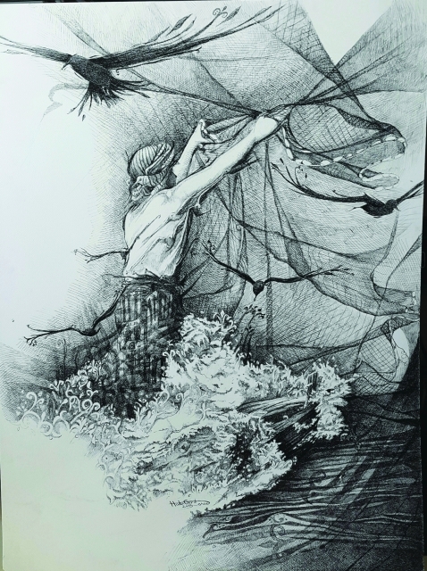 على صعيد الإبداع في رؤية الفن المعاصر للتراث، تتجلى لوحتان للفنانة المصرية المقيمة د. هدى غريب، التي تميزت بجمالية وخصوصية رؤيتها للتراث المحلي لتشكل إضافة في القيمة الفنية مستخدمة قلم الحبر فقط، لتشكل من النقاط وتقاطع الخطوط والتعرجات خامات تحاكي بإحساسها الواقع.