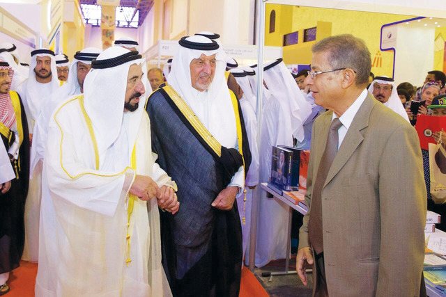 وقدم سموه أول نسخة من كتابه الجديد سيرة مدينة إلى مستشار خادم الحرمين الشريفين أمير مكة المكرمة صاحب السمو الملكي الأمير خالد الفيصل، ليقوم بعدها صاحب السمو حاكم الشارقة يرافقه أصحاب السمو والمعالي بجولة في أروقة المعرض، زار فيها جناح المملكة العربية السعودية واطلع على أحدث الإصدارات والكتب واللوحات التي يضمها الجناح ويرصد الحركة الثقافية والأدبية في المملكة. كما عرج سموه إلى عدد من الأجنحة المشاركة في المعرض ومنها الدوائر والمؤسسات الاتحادية والمحلية مطلعاً سموه على أبرز المبادرات والإصدارات الثقافية والأدبية، وإسهاماتها في رفد الثقافة العربية.