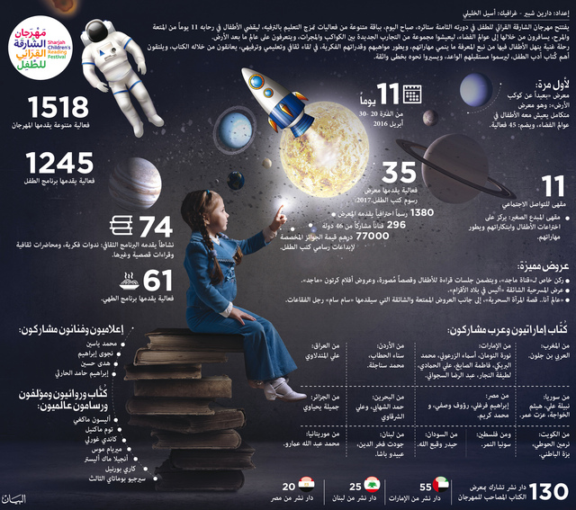 ذكر أحمد بن ركاض العامري، رئيس هيئة الشارقة للكتاب لـ»البيان«، أن مهرجان الشارقة القرائي يطل في دورته هذه بحلة جديدة، وثوب أنيق، وقال: تطل علينا النسخة الثامنة من مهرجان الشارقة القرائي للطفل، التي نسعى من خلالها إلى تحقيق رؤية صاحب السمو الشيخ الدكتور سلطان بن محمد القاسمي، عضو المجلس الأعلى حاكم الشارقة، وقرينة سموه، الشيخة جواهر بنت محمد القاسمي، رئيس المجلس الأعلى لشؤون الأسرة، الساعية إلى تعزيز ثقافة القراءة بين الأطفال وتثقيف وإثراء خبراتهم بالمعارف المختلفة، وإتاحة الفرصة أمامهم لتطوير قدراتهم والكشف عن مواهبهم.