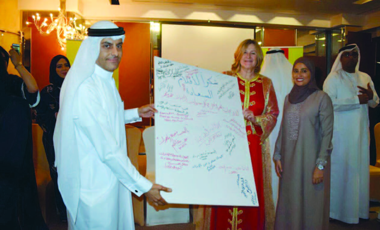 ويتابع: «تشير الإحصاءات عن 7 أفراد من كل 10 يتابعون مباريات الفريق الذي يشجعون، تحدد النتيجة سعادتهم لذلك اليوم. وعليه علينا الانطلاق من السؤال كيف للقلم أن يسعد الناس و75% من شباب الإمارات يتابعون الكرة. علينا توسيع مدارك المجتمع فيما يخص مفهوم السعادة الذي يرتبط بجوهر الإنسان نفسه»، وأنهى مداخلته بما رسم الابتسامة على وجه الحضور قائلاً: «رؤيتكم تشعرني بالسعادة».