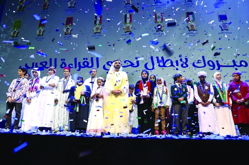 لا يتخلى عن التفاؤل، وبحكمة يقدم سموه نماذج رائدة كانت نبراساً لكل العرب، شاركت في مسابقة تحدي القراءة العربي، الذي ألهم نوابغ العرب ومواهبها من المحيط إلى الخليج، من ضمنهم فتاة المغرب كوثر، التي تلقت نبأ إصابتها بالسرطان بعد 3 أيام من اشتراكها بتحدي القراءة، ليزيدها ذلك إصراراً على قراءة 166 كتاباً في أشهر معدودة، وكذلك الفتاة الكفيفة من الأردن راما التي لم تجد كتاباً بلغة برايل فاستعانت بصديقتها التي ترى بعين واحدة فقط لتقرأ الفتاتان كتباً كثيرة بعين واحدة، وعشرات القصص الملهمة من التحدي الذي شارك فيه أكثر 3.5 ملايين طالب. يؤكد سموه في رسالته أنه متفائل بهذا الجيل، ومتفائل بروح التحدي التي رآها، ومتفائل بمستقبل عظيم تحت ظلال الكتاب.
