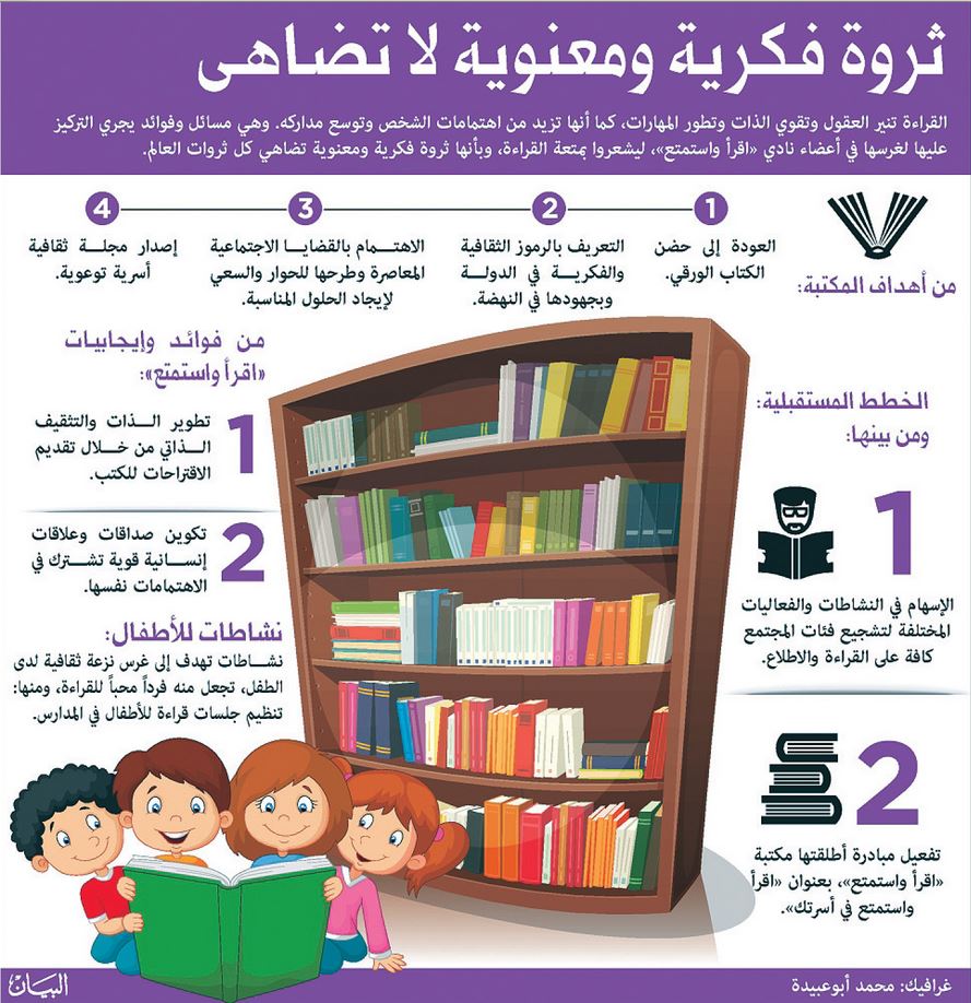 تعتبر مكتبة اقرأ التابعة للنادي، تجربة فريدة لالتقاء المثقفين وفرصة لمد الجسور وتقريب المسافات وتجدد التواصل وازدهار الثقافة والمزيد من التفاعل الفكري، ولا شك أن فيها ومعها تتشكل الذات عبر قيمة جمالية وثقافة اجتماعية حافلة بضروب المعارف والآداب والعلوم. وأشارت وداد بوشنين مؤسس ورئيس مجلس إدارة المكتبة والنادي، لـ«البيان، إلى أنه بعد تقاعدها من العمل وحصولها على الماجستير، أنشأت نادي»اقرأ واستمتع«. وكانت الانطلاقة من منزلها من خلال اجتماع شهري، وحرصت العضوات فيه على اختيار القراءة بطريقة حرة وسلسة والوقت المناسب للجميع، كما أضيفت صفة المرونة في ركائزه، لتكون عاملاً جاذباً لتشجيع الأخوات للانضمام إلى النادي لتحقيق هدف القراءة في المعرفة ونشر الثقافة.