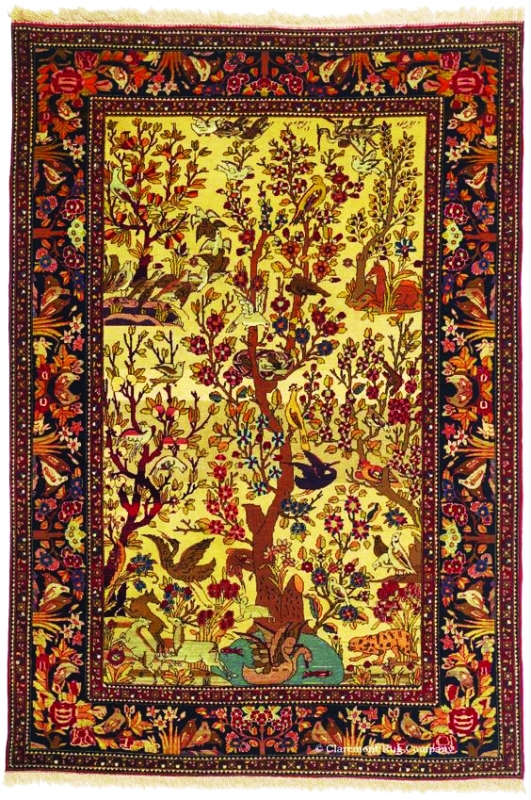 لا شك أن السر في شهرة السجاد الفارسي عبر العالم، هو في سحر الأيادي الفنية الماهرة في التعامل مع النسيج، وفق معايير فنية حاكت نقوشاً فارسية مميزة، تتصدرها الطبيعة المتخيلة، لينطلق المبدعون هؤلاء في اشتغالهم على تكريس مفردات الطبيعة في السجادة والفرش لإحضار مشاهد مزدحمة دون فوضى لطيور نادرة تغازل الأغصان بين الزهور البرية بأنواعها المنتشرة والنادرة، فضلاً عن أعشاب الزينة المتنوعة التي تضوع بأزكى الروائح، إضافة إلى تجسيدها لمشاهد تجسد حيوانات وزواحف مختلفة في غابات بلاد فارس وسهولها.. ومنذ أقدم الأزمان، رسخت مدارس السجاد في تبريز ثقافة الطبيعة الفارسية الساحرة لتحولها إلى منهجٍ يُحاك على السجاد عبر أنسجة الصوف والحرير، لتتفرد السجادة الفارسية بهويتها الخالصة.