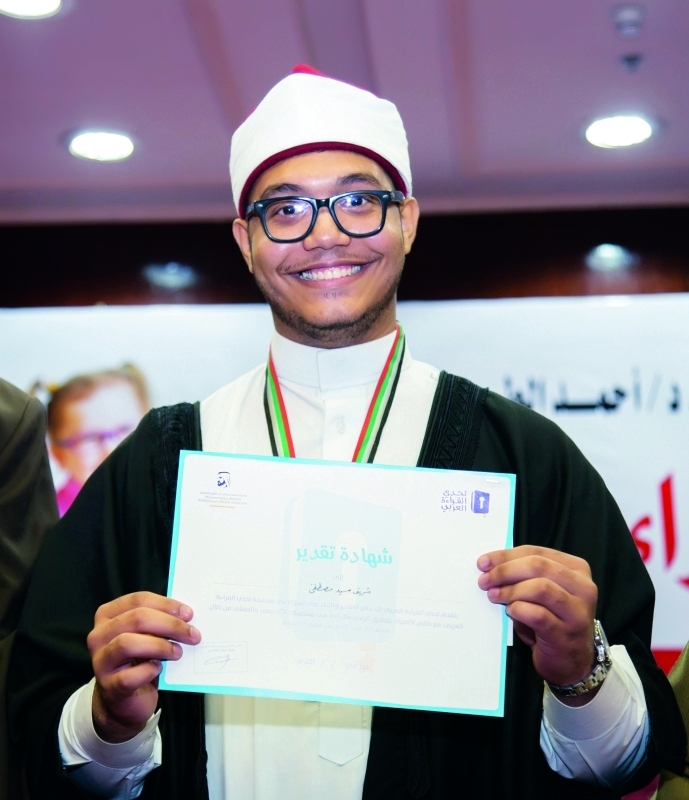 التزاماً بتوجيهات صاحب السمو الشيخ محمد بن راشد آل مكتوم نائب رئيس الدولة رئيس مجلس الوزراء حاكم دبي، رعاه الله، تتواصل فعاليات مشروع تحدي القراءة العربي في العواصم والمدن العربية، حيث تم تتوّيج الطالب شريف سيد مصطفى بطلاً لتحدي القراءة العربي، في دورته الثانية على مستوى قطاع التعليم الأزهري بجمهورية مصر العربية، تحت رعاية فضيلة الإمام الأكبر الأستاذ الدكتور أحمد الطيب شيخ الأزهر، وحضور الأستاذ الدكتور عباس شومان وكيل الأزهر الشريف، والدكتور محمد أبو زيد الأمير رئيس قطاع المعاهد الأزهرية.