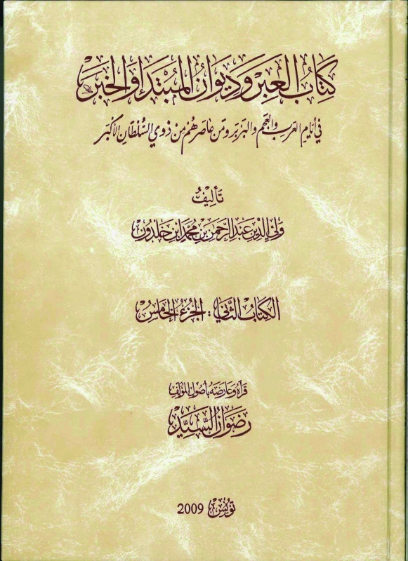 «هذه مسودة المقدمة وكتاب العِبر في أخبار العرب والعجم والبربر وهي علمية كلها، كما أن ديباجة التاريخ قد قابلتها بجهد وصححتها، وليس يوجد من نسختها أصح منها. وكتب مؤلفها عبد الرحمن بن خلدون، وفقه الله تعالى ... ».