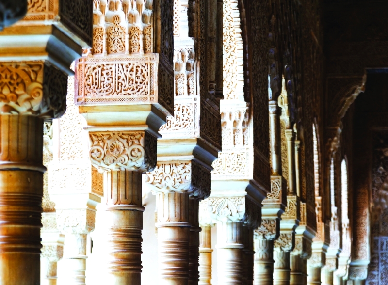 هذه القاعة المثالية التي تبدو كالحلم في قبتها النبيلة والفاخرة في نقشها، وكأنها مستمدة من نخالة العسل في خلاياها الصغيرة، إلى نوافذ مقوسة، وجدران تنساب شعراً ونقشاً، ويدخل أدب القصيد لابن زَمْرَك هناك، ويقبع في هذا المكان الذي يبدو كالأوبرا، والذي يكفي أن تسمع المسمى «الأختين» لتلعب المخيلة في تفاصيل تاريخه القصصي الذي مضى لتلك الأميرتين اللتين سكنتا هذا المكان.