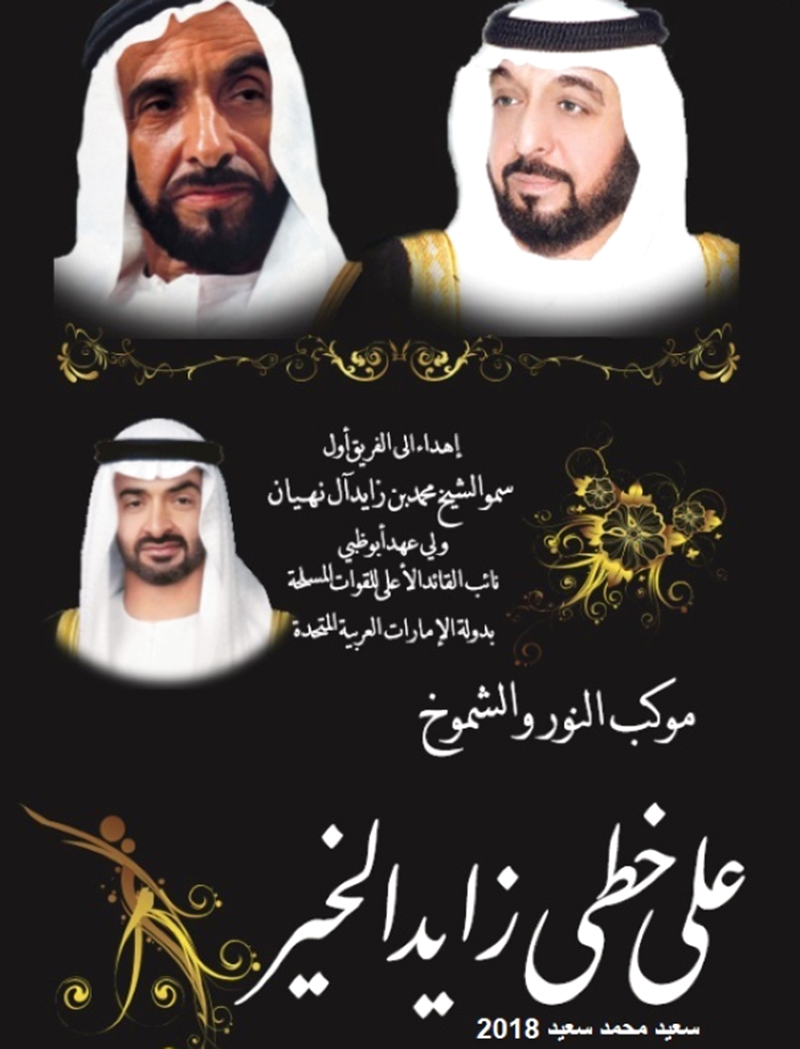 «موكب النور والشموخ.. على خطى زايد الخير» كتاب يحوز قيمة وأهمية كبيرة على مستوى منطقة الخليج العربي، حيث أخذ يحقق انتشاراً واسعاً، إذا تستعد مؤسسة «ميامين للإعلام» لإصدار الطبعة الثالثة الخاصة من الكتاب، لمؤلفه البحريني سعيد محمد سعيد، وذلك بعد نجاح الطبعتين السابقتين: الأولى في العام 2011، والثانية في العام 2015 ضمن مطبوعات وزارة الثقافة والشباب تنمية المجتمع.