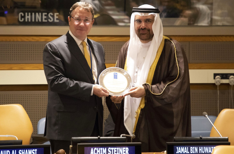 وذلك بحضور جمال بن حويرب المدير التنفيذي لمؤسسة محمد بن راشد آل مكتوم للمعرفة، نيابةً عن سمو الشيخ أحمد بن محمد بن راشد آل مكتوم رئيس المؤسسة، وأخيم شتاينر مدير برنامج الأمم المتحدة الإنمائي، إلى جانب سعود الشامسي نائب المندوبة الدائمة لدولة الإمارات لدى الأمم المتحدة، ومراد وهبة، الأمين العام المساعد للأمم المتحدة والمدير الإقليمي لمكتب الدول العربية.