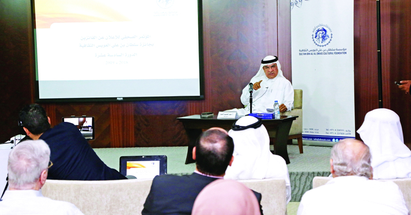 أعلن عبد الحميد أحمد، الأمين العام لمؤسسة سلطان بن علي العويس الثقافية، في مؤتمر صحافي أقيم صباح أمس الأحد، في مقر المؤسسة الكائن بمنطقة الرقة في دبي، أسماء الفائزين بجائزتها في الدورة السادسة عشرة 2018- 2019، وهم الشاعر علي جعفر العلاق، والروائية عَلَوية صبح، والمفكر حيدر إبراهيم علي، والناقد محمد لطفي اليوسفي، بينما منح مجلس أمناء الجائزة، الشيخة مي محمد آل خليفة، جائزة الإنجاز الثقافي والعلمي.