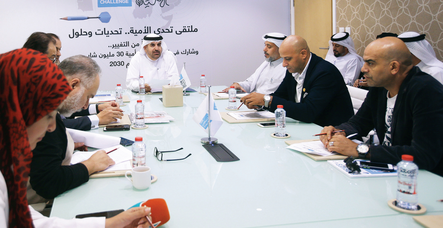 أعلنت مؤسَّسة محمد بن راشد آل مكتوم للمعرفة، خلال مؤتمر صحافي أقيم بمقرها بدبي أمس، وتزامن مع اليوم العربي لمحو الأمية (8 يناير)، عن تفاصيل وأجندة «ملتقى تحدي الأمية» في دورته الأولى تحت شعار «تحديات وحلول» في 24 فبراير المقبل، والذي يقام تحت رعاية سمو الشيخ أحمد بن محمد بن راشد آل مكتوم، رئيس مؤسَّسة محمد بن راشد آل مكتوم للمعرفة، وتهدف المؤسَّسة من خلال تنظيم الملتقى إلى توفير منصة شاملة تجمع الخبراء والمعنيين بمجال محو الأمية من كافة دول العالم، لتبادل الخبرات والتجارب وتوطيد أواصر التعاون والعمل المشترك لتقديم الحلول الناجعة للقضاء على الأمية في الوطن العربي، وتسليط الضوء على تجارب الأفراد والمؤسَّسات الملهمة في مجال محو الأمية.
