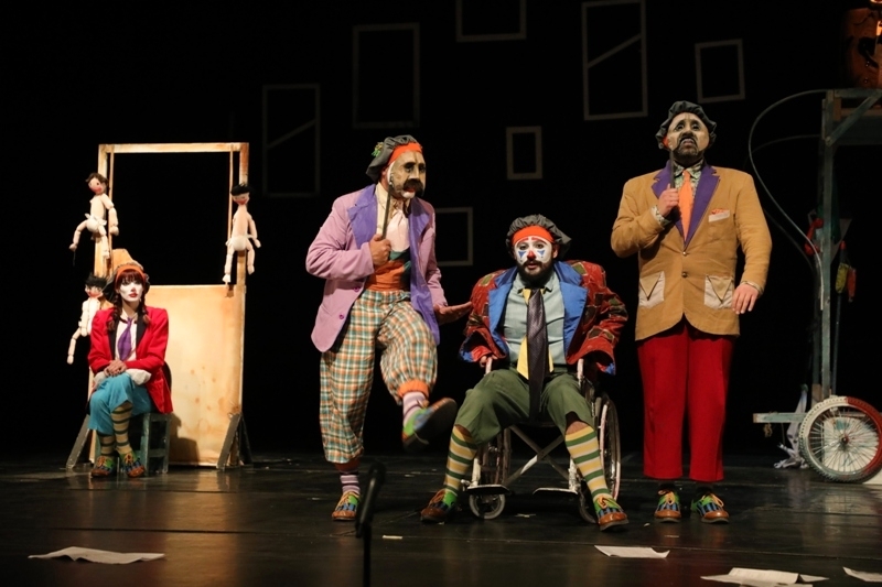 ورغم اتفاق الحكايا الثلاث على تصوير حياة المُهمَّشين، ومحاولاتهم البائِسة لإيجاد مورِدٍ يسدّ رَمَقَهم، لكن يبدو أن المخرج فضَّل عدم إغراق الجمهور بالحُزن ونوبات البكاء، فاختار مشاهِد سريعة وحوارات قصيرة وتعبيرات مجازية، وبالَغَ في تلوين وجوه المُمثلين وثيابهم ليظهروا كمُهرِّجين، كناية عن أنه مسرح داخل مسرح، أو وداع مختلف للفرح.