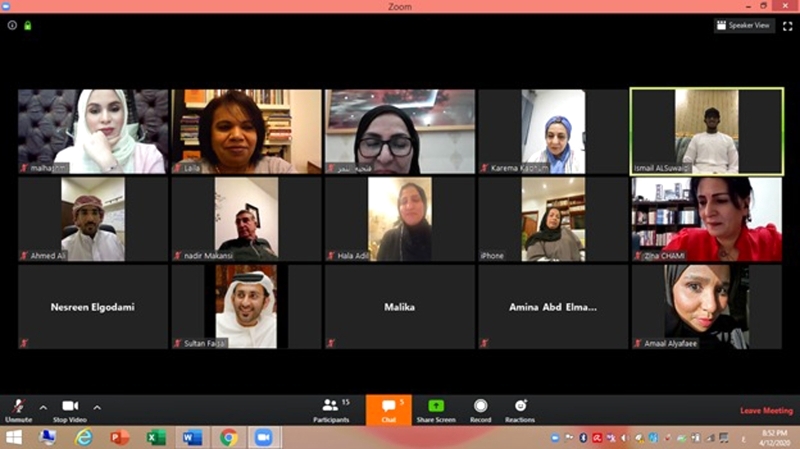 حضر الجلسة الافتراضية عائشة سلطان عضو مجلس إدارة الندوة ورئيس اللجنة الثقافية، ود.سلطان فيصل الرميثي الأمين العام لمجلس حكماء المسلمين، المدير التنفيذي للتحرير والنشر في شركة أبوظبي للإعلام، ود. مريم الهاشمي أستاذة الأدب العربي بكليات التقنية، والكاتبة الإماراتية فتحية النمر والمهندسة هالة عادل، والإعلامي نادر مكانسي، والشاعرة كريمة السعدي، ومجموعة من مشاركي الصالون.
