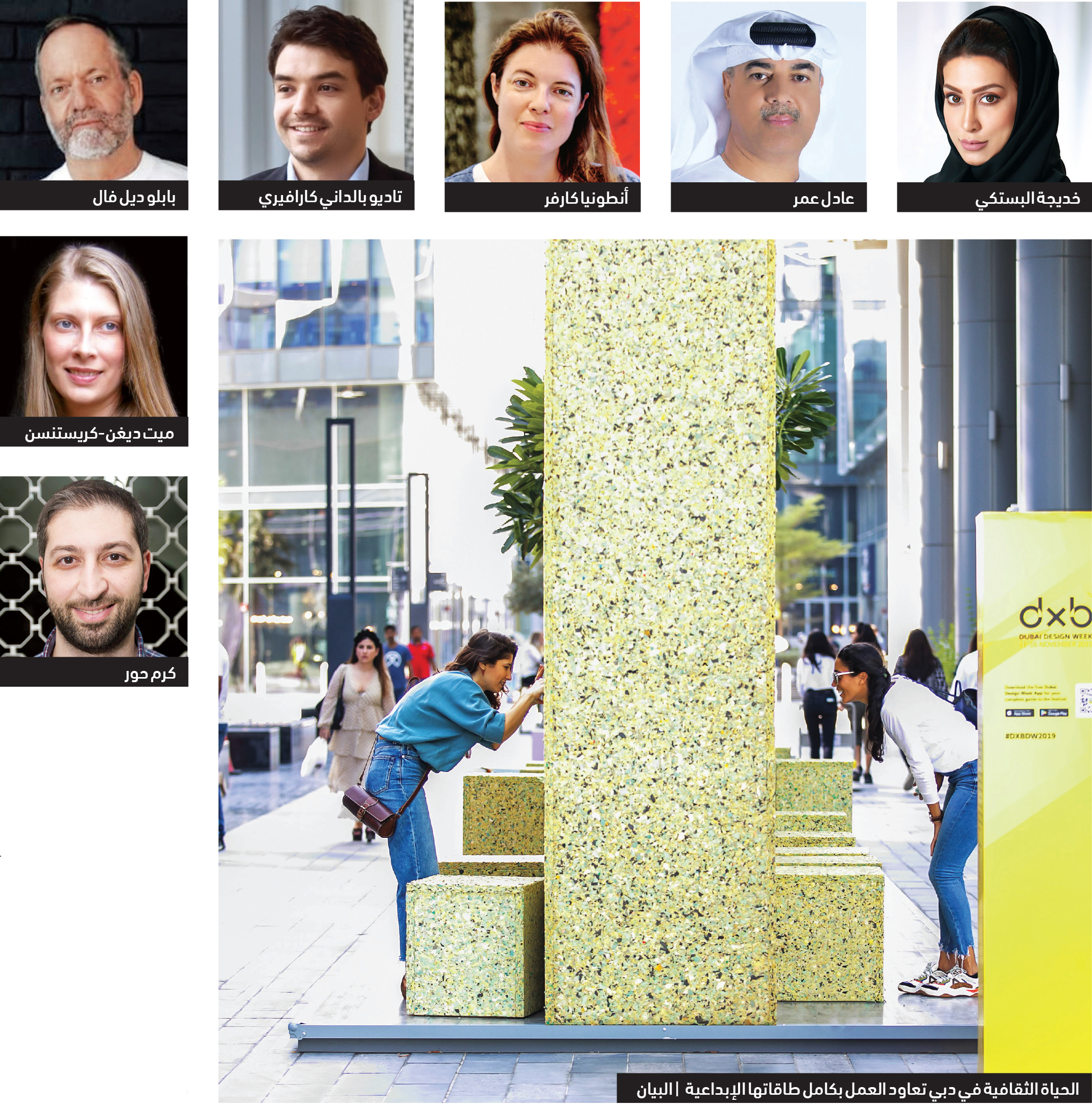 يقول بابلو ديل فال، المدير الفني في «آرت دبي»: إن «مجموعة آرت دبي» سارعت للاستجابة للتحديات المباشرة التي فرضتها أزمة «كوفيد 19»، حيث قامت في شهر مارس بإطلاق «منتدى الفن العالمي» أول مؤتمر فني رقمي من نوعه تحت شعار «موجز أخبار الساعة»، ونظمت «ماراثون دبي للأفكار» بالتعاون مع «هيئة الثقافة والفنون في دبي».