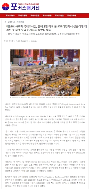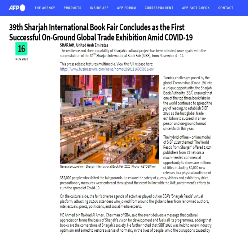 وحملت أبرز الصحف العالمية عناوين تؤكد ريادة الشارقة في تقديم نموذج معرض هجين بأعلى معايير السلامة والوقاية، وأكدت إثر انعقاد المعرض على واقع صناعة النشر الإماراتي والعربي والأجنبي، وما حمله من رسائل لمختلف القطاعات الثقافية والاقتصادية، حيث كان المعرض محط اهتمام العديد من بلدان العالم، وشهد خلال الأحد عشر يوماً زيارة وفود رسمية من سفراء وقناصل بحثوا تجربة الشارقة في تنظيم المعرض واستعرضوا مجالات التعاون والعمل المشترك مع هيئة الشارقة للكتاب.
