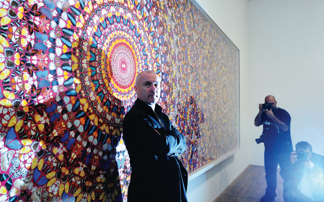 معرض (أ ف بالفنان البريطاني داميان هيرست أمام لوحته "لقد أصبحت الموت ، محطم العوالم 2006" وذلك خلال افتتاح معرضه الخاص بمتحف "تيت الحديث" وسط لندن أمس )