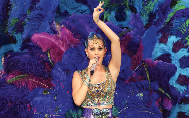 غناء (أ ف ب)المغنية الأميركية كاتي بيري تقدم استعراضاً فنياً خلال الحفل الموسيقي الذي أقيم أمس في جمعية الشبان بكلية التربية البدنية في نانديم، القريبة من تشيناي الهندية.