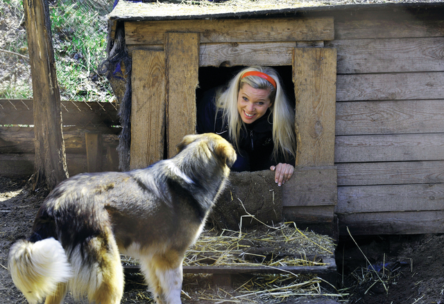 جولة تفقدية ( أ ف ب )الأميرة الألمانية مايافون هوهنزوليرن تطل برأسها من كوخ كلب في مركز لإيواء الحيوانات الضالة الذي يضم حالياً نحو 1600 كلب وقطة في أوكرانيا، وقد وصلت الأميرة إلى كييف في إطار جولة للدفاع عن الحيوانات الضالة قبل بدء البطولة الأوروبية لكرة القدم 2012 .