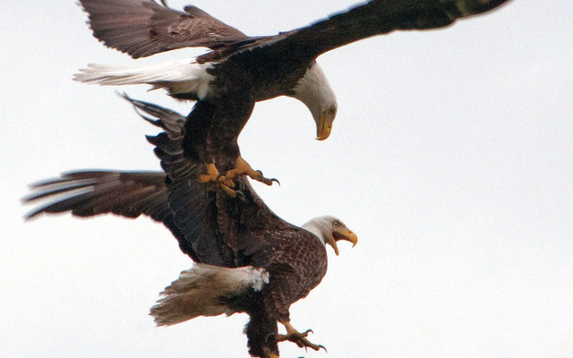 مزاحمة (أ ف ب)اثنان من النسور يتنازعان على عش بالقرب من بناية في مركز كينيدي بولاية فلوريدا الأميركية. أحد النسرين احتل قمة عمود ويزاحمه فيها النسر الآخر.