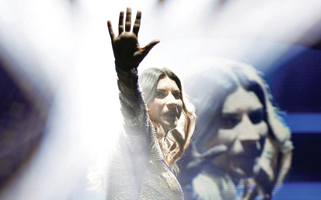 غناء (إي. بي. ايهالمغنية الإيطالية لورا بوسيني في حفل غنائي صاخب في مدريد، والحفلة جزء من جولة أوروبية لبوسيني لتقديم سجل جديد لها. )