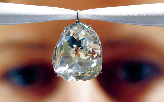 مزاد ( أ ب إموظفة تستعرض ماسة وزنها 34.98 قيراطاً، تصل قيمتها إلى 4 ملايين دولار في مزاد بصالة «سوثبي» في مدينة زيوريخ بسويسرا، ويقام المزاد يوم 15 من الشهر الجاري. )