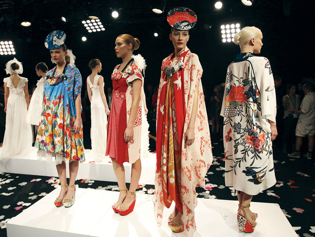 ألوان السهرة (ا ف ب )مجموعة من عارضات الأزياء يقدمن تشكيلة من فساتين السهرة التي تمتاز بألوان فاتحة يغلب عليها الأبيض والأحمر من إبداع المصممة بي أكيرا خلال فعاليات أسبوع الموضة المقام حالياً في مدينة سيدني الاسترالية.