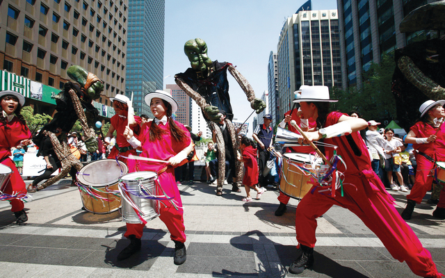 احتفالات أطفال سيول (أ ب أموسيقيون يلبسون أزياء تقليدية مفرحة يقدمون أعمالهم في الهواء الطلق خلال مهرجان يوم الطفل في عاصمة كوريا الجنوبية سيول، ويوم الطفل حدث سنوي يتم الاحتفال به في مختلف أنحاء العالم.)