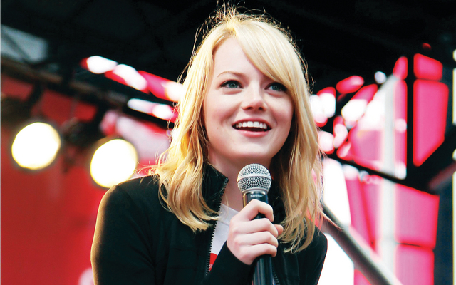 جمال يكافح الأمراض (ا ف بالممثلة الأميركية إيما ستون، خلال مشاركتها في مدينة نيويورك، على خشبة مسرح خاص، ضمن برامج فعالية (إيف رفلون) للمشي والجري في دورتها ال 15، الهادفة الى تشجيع جهود مكافحة السرطان لدى النساء. )