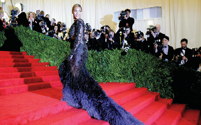 فستان بيونسيه أ ف ب)المغنية الأميركية بيونسيه، التي أختيرت أجمل امرأة في العالم 2012، ترفل بفستانها الأزرق، المغطى بالدانتيل والشيفون، لافتة أنظار المصورين الى ذيله الطويل، وهي تجره أثناء حضورها أمس، إلى مهرجان ملابس «ميتروبوليتان» في نيويورك.