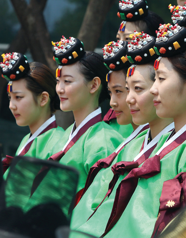 تقاليد (أي بي أيه)فتيات كوريات جنوبيات في أزيائهن التقليدية، يقدمن أمس عروضاً في تظاهرة فلكلورية محلية نظمت في العاصمة سيوول.