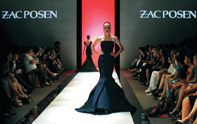 أزياء مرهفة ( أ ب أ )عارضة أزياء تقدم زياً مرهفاً من إبداع المصمم الأميركي زاك بوسن خلال مهرجان أزياء أودي الذي يختتم اليوم في سنغافورة