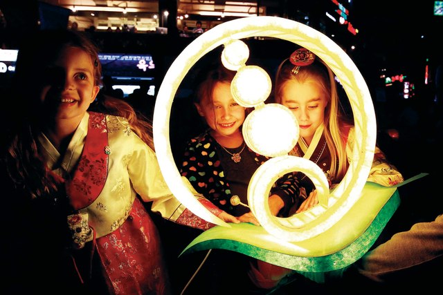 بهجة الضوء (أ بي أيه)أطفال يلعبون أمس، وقد غمرتهم فوانيس الضوء، المعلقة أمام أحد الواجهات، وسط العاصمة الكورية الجنوبية سيؤول، في إطار احتفالات تقليدية، ويعد هذا الاحتفال من اعرق الاحتفالات الكورية .