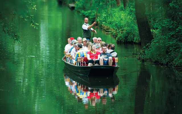 لقطة (أ. ف. ب)مجموعة من السياح يقومون بجولة نهرية على قارب، يوم أمس، في نهر بورغ شرقي ألمانيا، يتمتعون بالجو المشمس، وسحر الطبيعة على ضفافه.