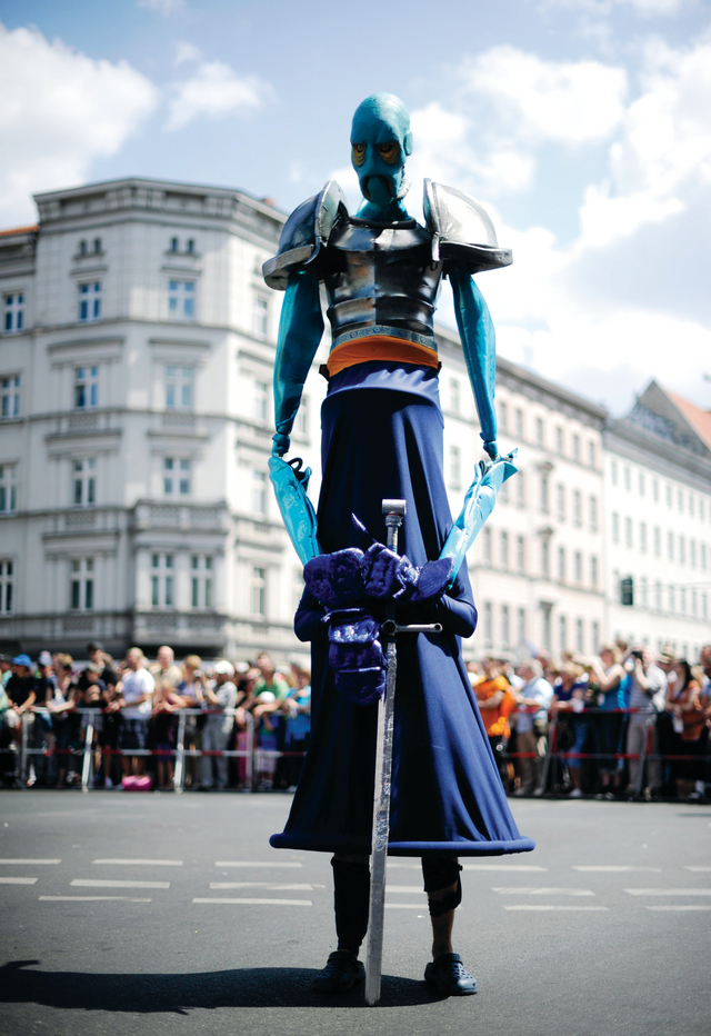 كرنفال (أ ف ب)مجسم تماهى فيه راقصان ألمانيان، في إحدى ساحات منطقة كرزبيج في برلين، على هامش فعاليات مهرجان «كرنفال الثقافات»، الذي يحتفي بالتنوع العرقي والثقافي في ألمانيا.