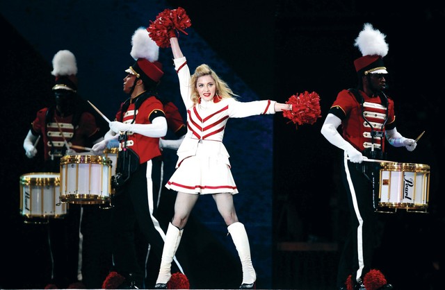 أطلت أيقونة موسيقى البوب المغنية الأميركية مادونا (54 عاما)، أول من أمس، أمام جمهورها، في جزيرة ياس بالعاصمة أبوظبي، حيث غنت في حفل ساهر للحب والسلام، أمام 25 ألف متفرج، قدمت فيه مجموعة من أغنياتها، فيما رافقتها فرقتها، التي أضفت بهجة مع الأغاني، وحماساً على الخشبة عن طريق الرقص وقرع الطبول.