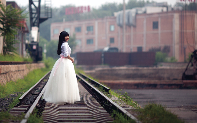 عروس صينية شابة تقف أمس أمام عدسات المصورين بين خطوط السكك الحديدية المهجورة في حي الفنون الذي كان سابقاً موقعاً لمصانع الإلكترونيات في بكين . وفي الصورة تستعيد العروس ذكرياتها عن هذه القطارات التي ركبتها أثناء عبورها بكين إلى المحافظات الأخرى وأرادت أن تخلّد هذه الذكرى.