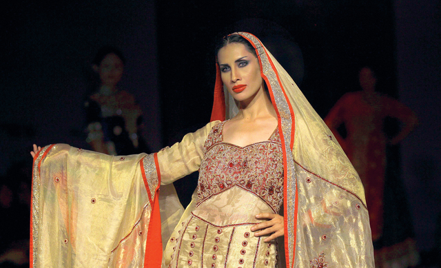 عارضة أزياء تقدم زيا جميلا من إبداع المصمم أرورا نوبور الذي يعتني بألوانه الهادئة ونقوشه المطرزة بطريقة رائعة خلال أسبوع الموضة المقام حاليا في مدينة بنغالور الهندية التي تصنف بمدينة الحدائق وذلك بسبب شوارعها العريضة المحفوفة بالأشجار الظليلة وبسبب ضواحيها الهادئة.
